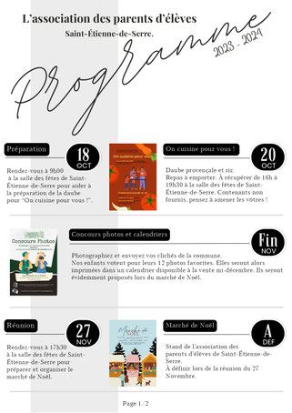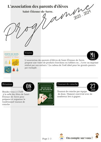 L'association des parents d'élèves de St Etienne de Serre, est une association très dynamique qui organise tout au long de l'année des temps festifs et de partage pour l'ensemble de la population du territoire. Grâce à leur mobilisation, les enfants participent à de nombreuses sorties et activités...